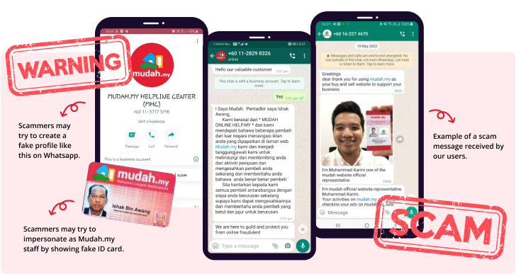 If you receive a message claiming to be from Mudah.my or are unsure of its authenticity, please reach out to our Customer Service team for verification.